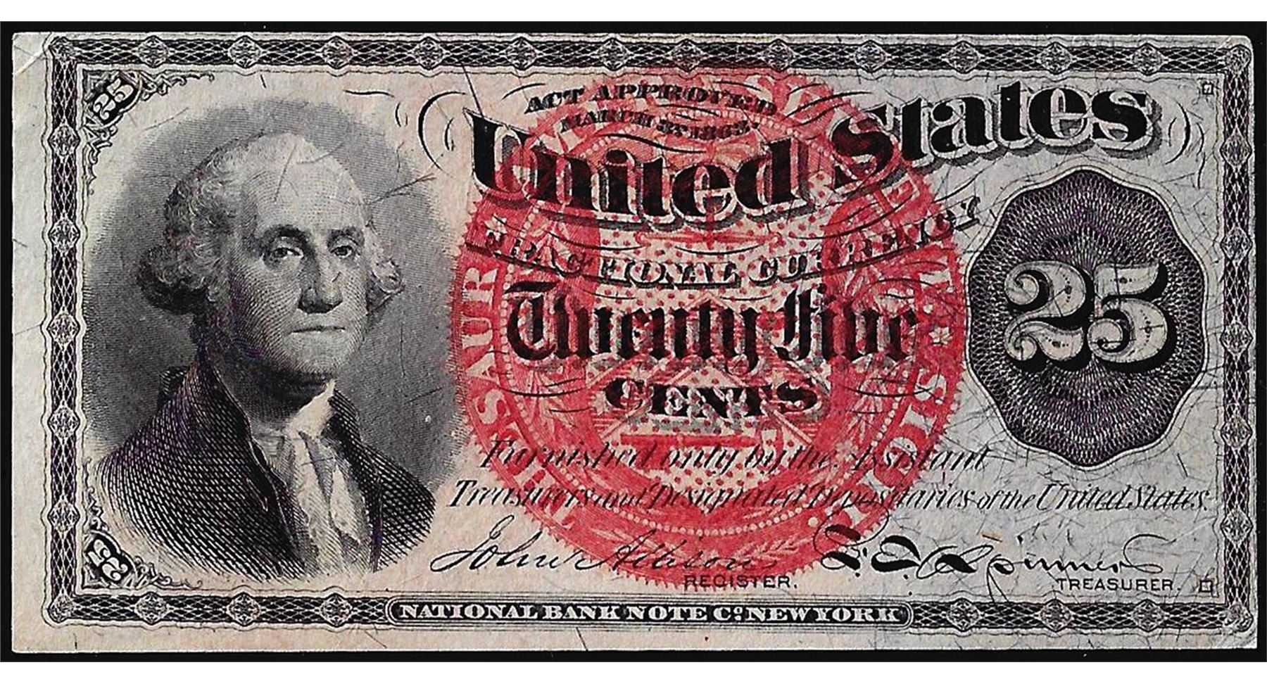 One March 3, 1863 Twenty-Five Cents Fourth Issue Fractional Currency Note.