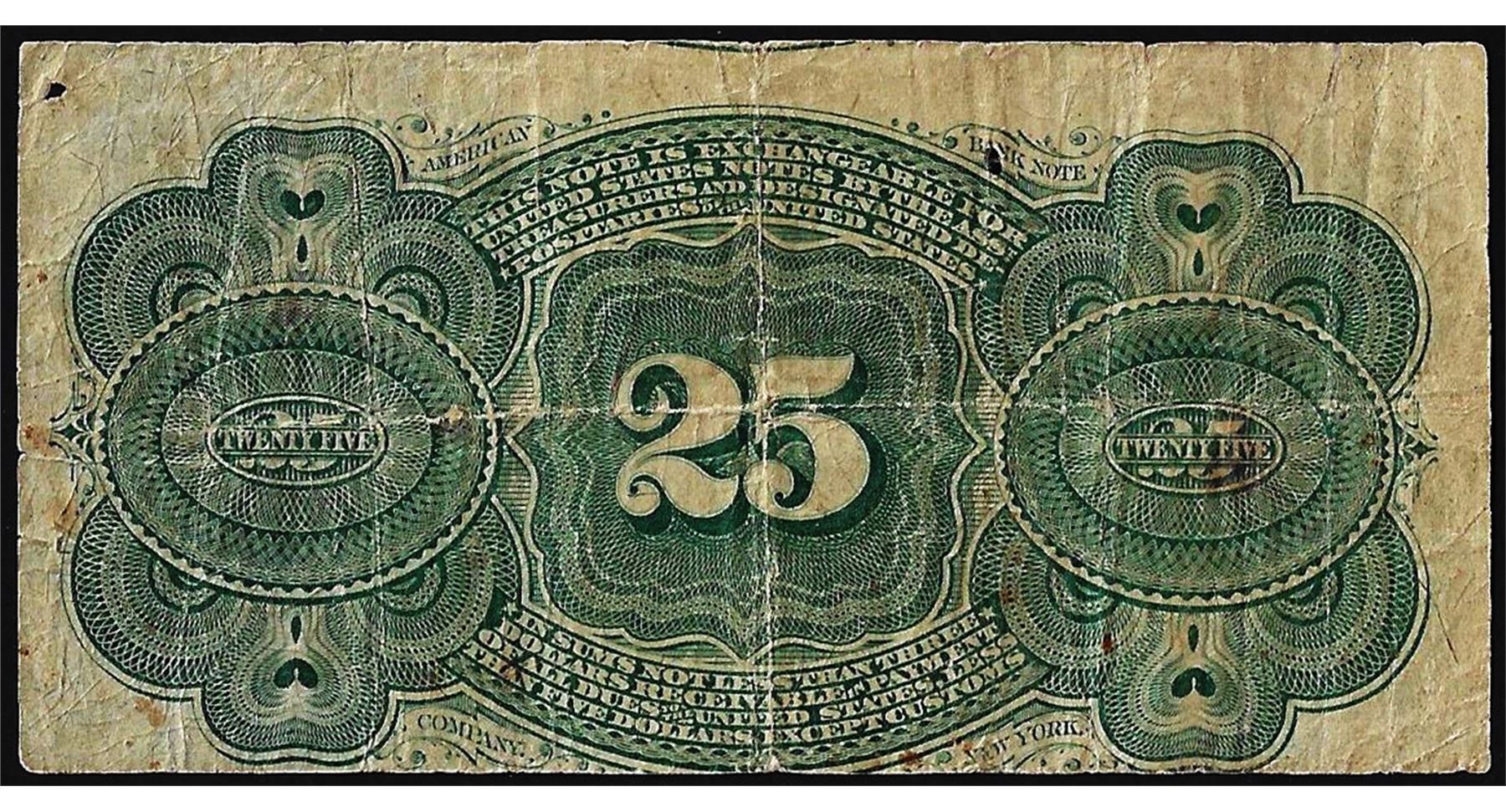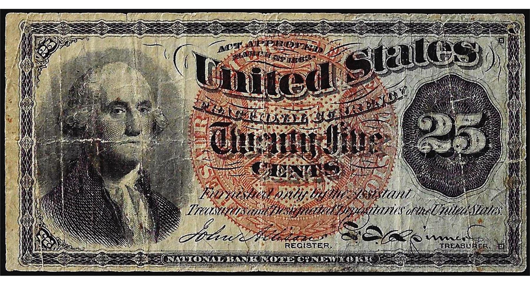 One March 3, 1863 Twenty-Five Cents Fourth Issue Fractional Currency Note.