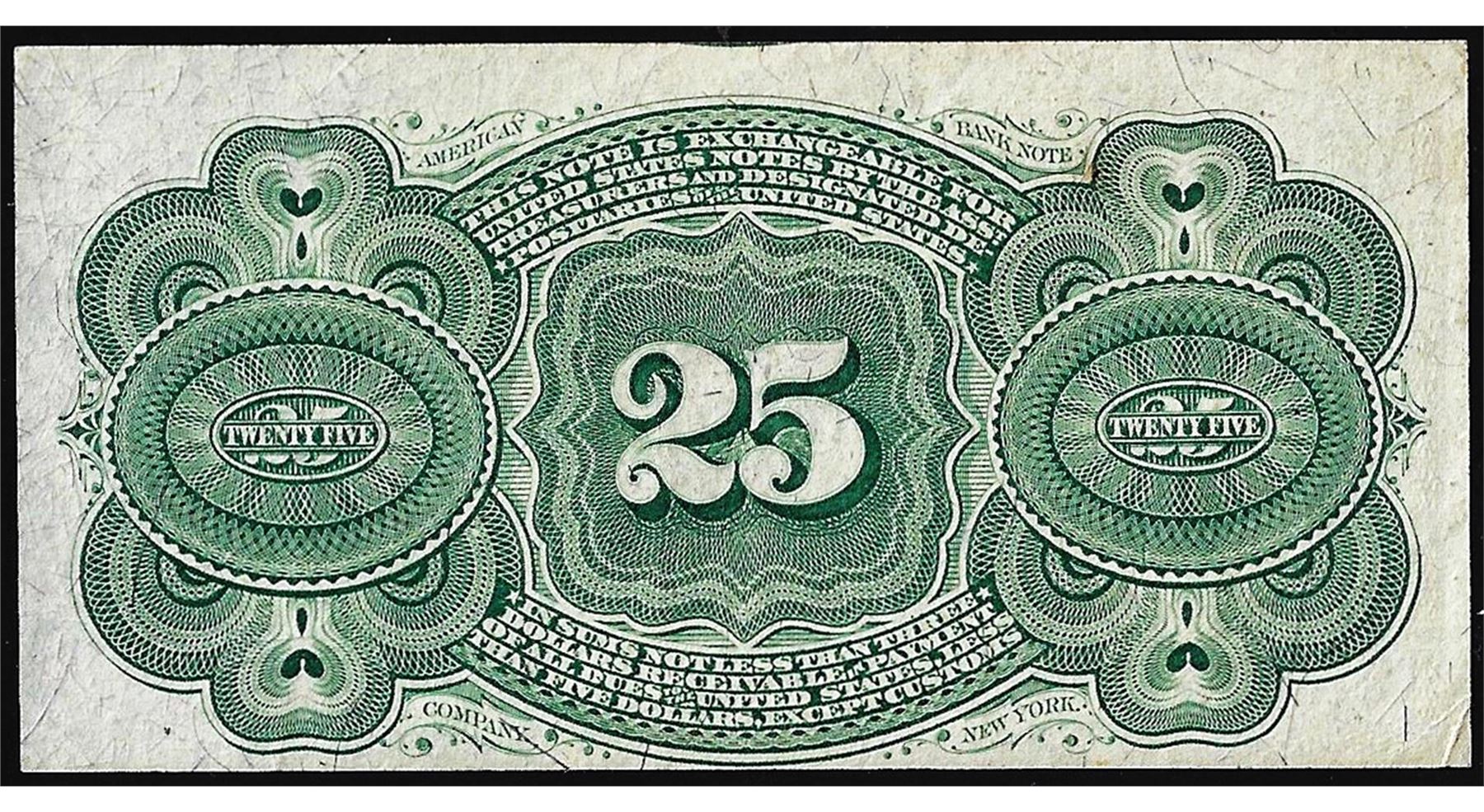 One March 3, 1863 Twenty-Five Cents Fourth Issue Fractional Currency Note.