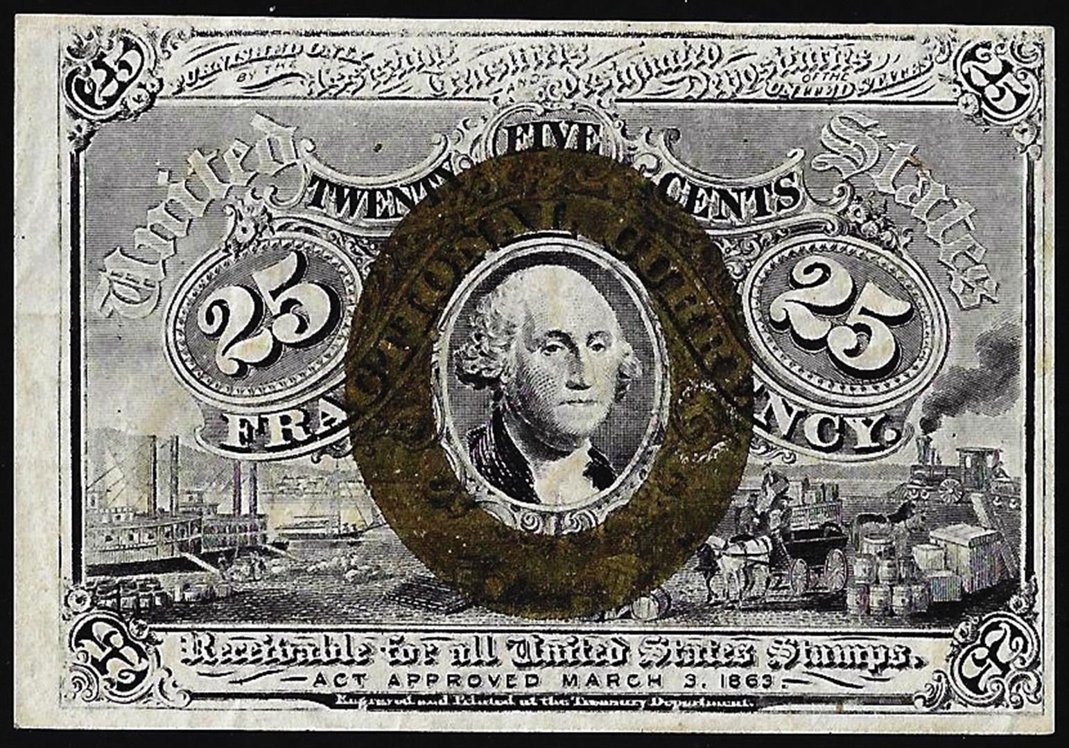 One March 3, 1863 Twenty-Five Cents Second Issue Fractional Currency Note.