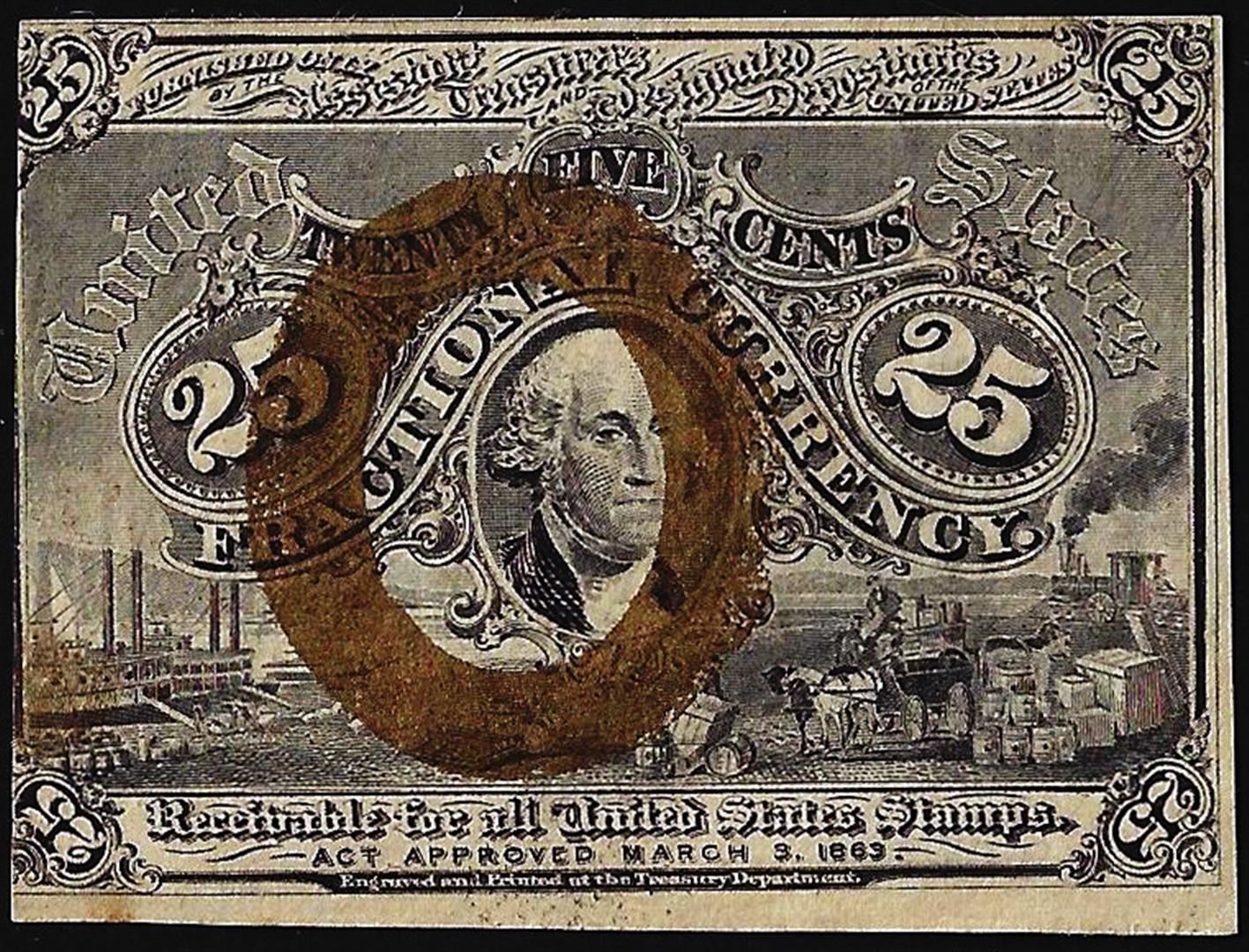 One March 3, 1863 Twenty-Five Cents Second Issue Fractional Currency Note.