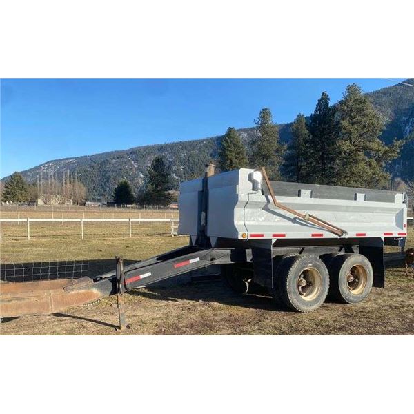 Tandem axle with air brakes, inspection good until end of April 2024, electric tarp, box has been re-lined, new pintle eye, cylinder does not leak, co