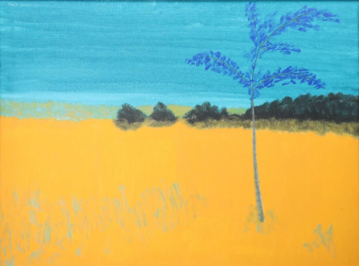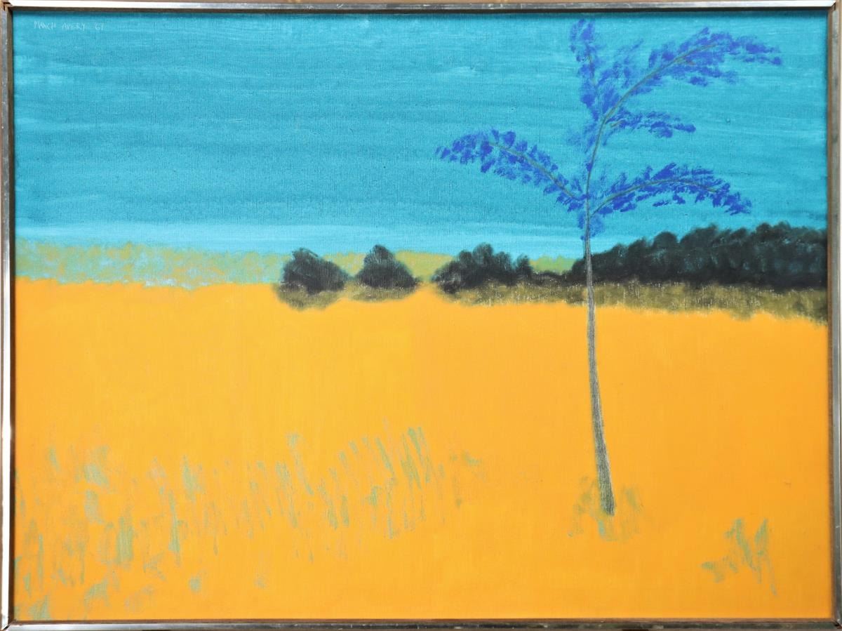 Titled "Blue Tree Blue Sky", oil on canvas, signed upper left MARCH AVERY '67.