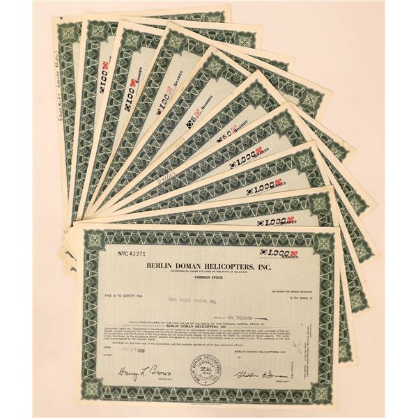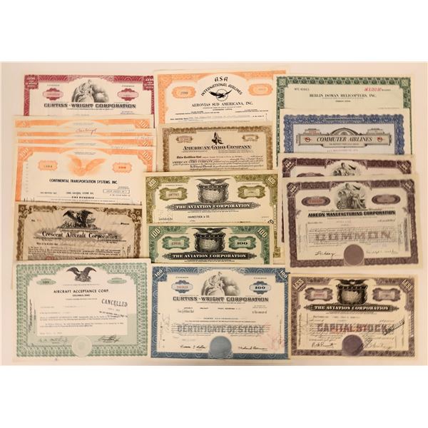 17 aviation stocks, a nice group. 1968 Commuter, 1929 Crescent, 1934 American Gyro, Berlin Doman Helicopters, ASA Intl., Curtiss Wright, Aviation Corp