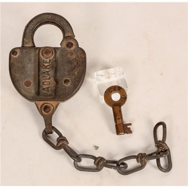 A 1920s era switch lock from the Southern Pacific Railroad. Has key and about a 6: chain attached. It measures 3"x 3" and is in decent co...