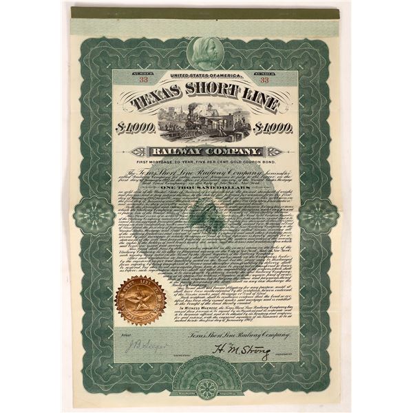 Cancelled $1,000 Consolidated Mortgage 5% Gold Registered Bond issued to Fannie M. Wood on Oct 26, 1899 signed by secretary and president for Central