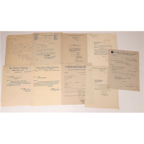 10 railroad letterheads c. 1875-1917. 2x Erie Railroad, Jay Street Terminal, 2x Pittsburgh, Shawmut & Northern RR, Brooklyn Rapid Transit, Nort...