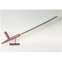 Sioux Catlinite Pipe Stem 31.5" overall. Unusual pipe with inlaid lead designs and mirrors. Carved Ash stem. Circa 1885. Includes custom stand...