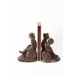 Mike McFarland (1947 - ) Never Walk When You Can Ride Each 8" x 6" x 5" bronze bookends Each inscribed: (c) Mike McFarland 23/40, 198...