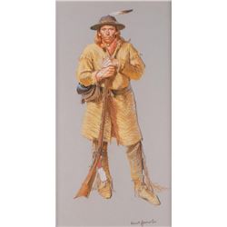 Ned Jacob (1938 - )(CA) Mountain Man 27.5" x 14.5" pastel Signed lower right Verso: Label stating: Ned Jacob, The picture represents a fur...