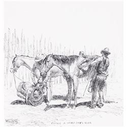 Will James (1892-1942) After a Hard Day's Ride 8.5" x 8" pen and ink Signed and dated 1933 lower left $3,000-5,000 Includes two books ...