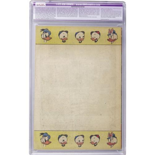 Donald Duck in "Darkest Africa." Walt Kelly cover. Carl Barks art. CGC notes, "Restoration includes: piece added to cover, glue on spine of cover." Overstreet 2006 GD 2.0 value = $300; VG 4.0 value = $600; FN 6.0 value = $900. <BR><BR><b>Shipping:</b> Slabbed Comic (<a target="_blank" href="http://www.heritageauctions.com/common/shipping.php">view shipping information</a>)