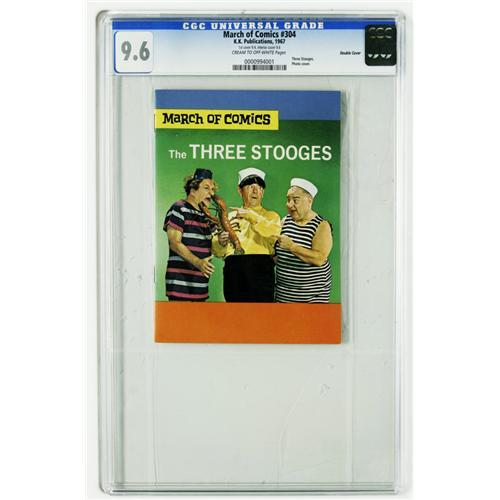 <B>March of Comics #304 The Three Stooges - Double Cover (K. K. Publications, Inc., 1967) CGC NM+ 9.6 Cream to off-white pages.</B></I> Photo cover. CGC notes, "1st cover 9.4, interior cover 9.6." Overstreet 2006 NM- 9.2 value = $65. CGC census 4/06: 6 in 9.6, none higher.