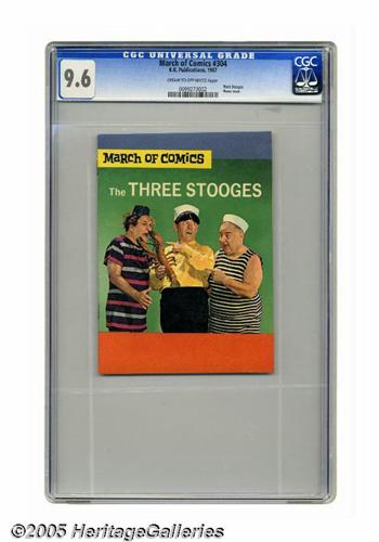 <B>March of Comics #304 The Three Stooges (K. K. Publications, Inc., 1967) CGC NM+ 9.6 Cream to off-white pages.</B></I> Photo cover. Overstreet 2005 NM- 9.2 value = $65. CGC census 4/05: 6 in 9.6, none higher.