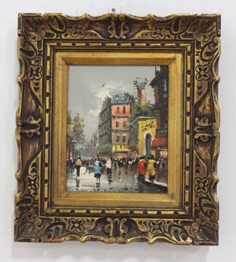Oil on canvas. Approx. 10" H x 8" W sight, 16 1/2" H x 14 1/2" W framed. From an Edgewater, NJ estate.