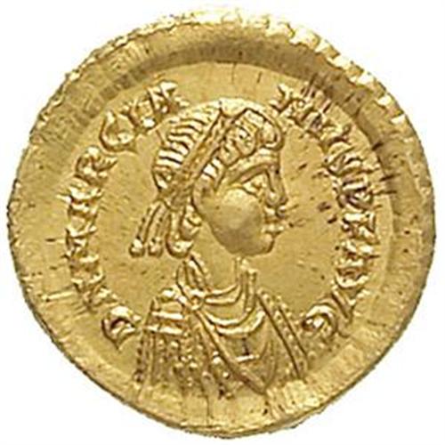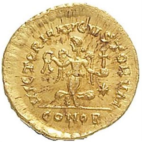 Roman Empire Coins. Marciano (450-457). Tremisse, Constantinople. D/ DN MARCIANVS PF AVG. Busto diademato, drappeggiato e corazzato a destra. R/ VICTORIA AVGVSTORVM. La Vittoria avanza a destra, con il capo rivolto indietro. Nel campo, a destra, una stella. In esergo: CONOB. LRC 487. gr. 1.40 AU. FDC/qFDC.