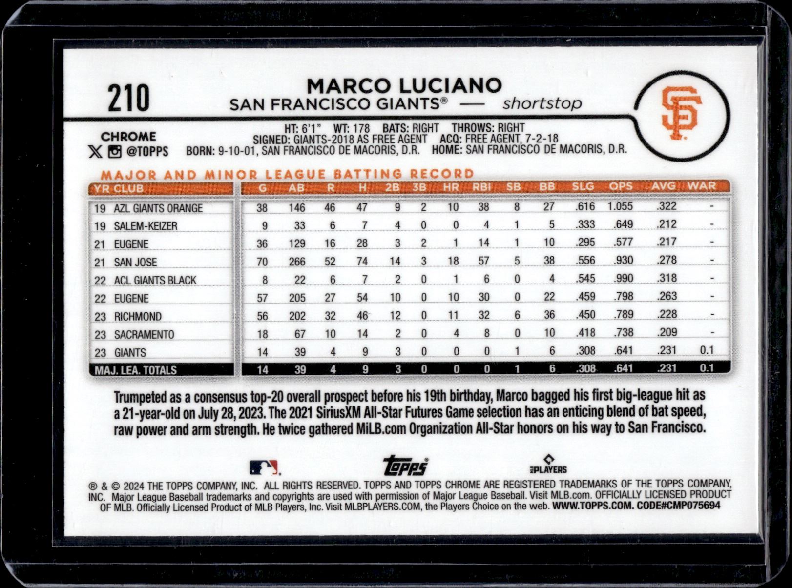 Marco Luciano Xfractor RC 2024 Topps Chrome #210
