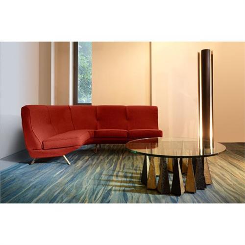 Marco Zanuso<BR>curved sofa<BR>Arflex<BR>Italy, 1951<BR>upholstery, brass<BR>84 w x 59 d x 35 h inches<BR>Literature: <BR><i>Mobili Tipo</i>, Aloi, pg. 91 illustrates variation <i>Repertorio 1950-1980</i>, Gramigna, pg. 65 illustrates variation<BR><BR>Condition of the item is not included in this description. Condition reports are available from Wright upon request. Wright strongly recommends that you review a condition report for each item on which you plan to bid.