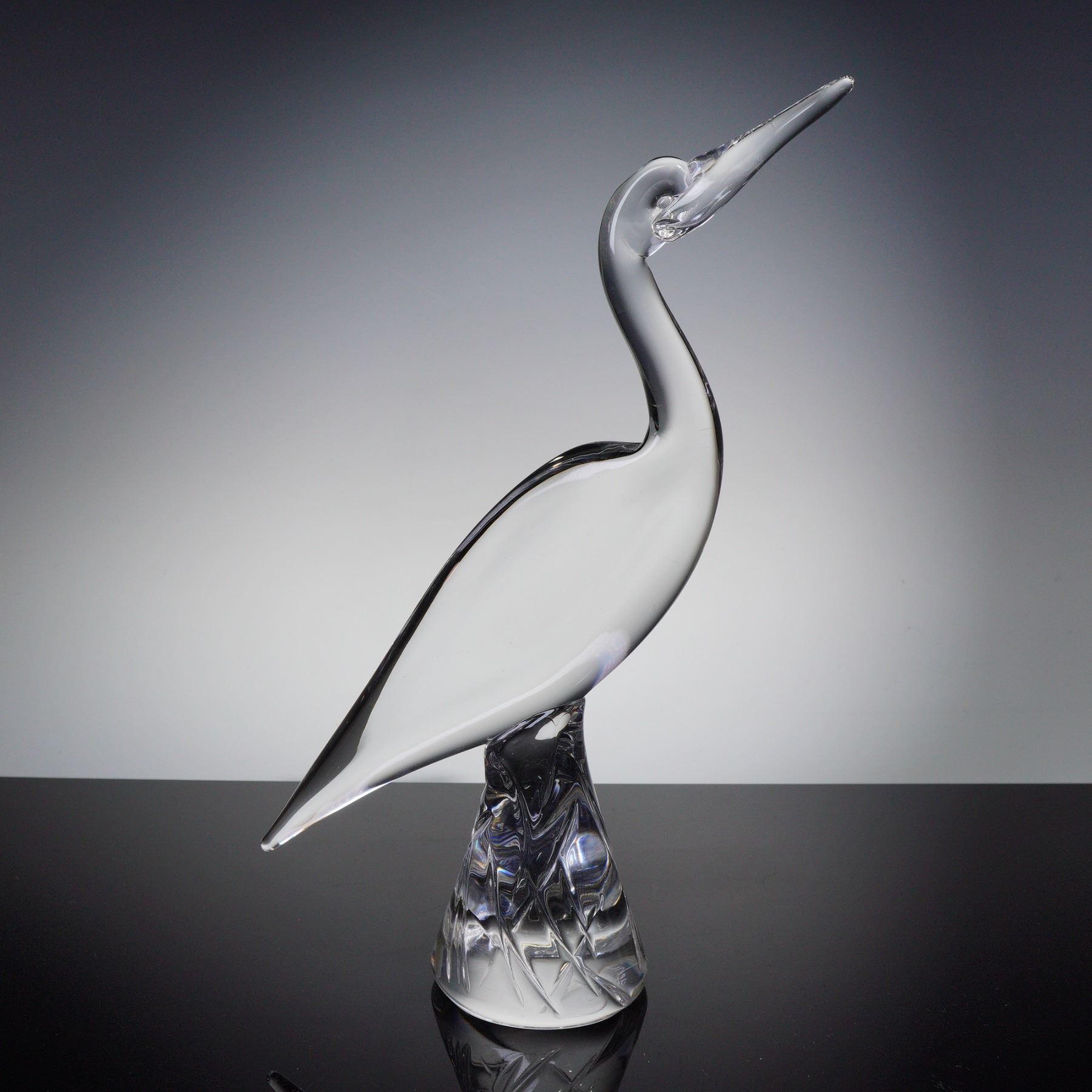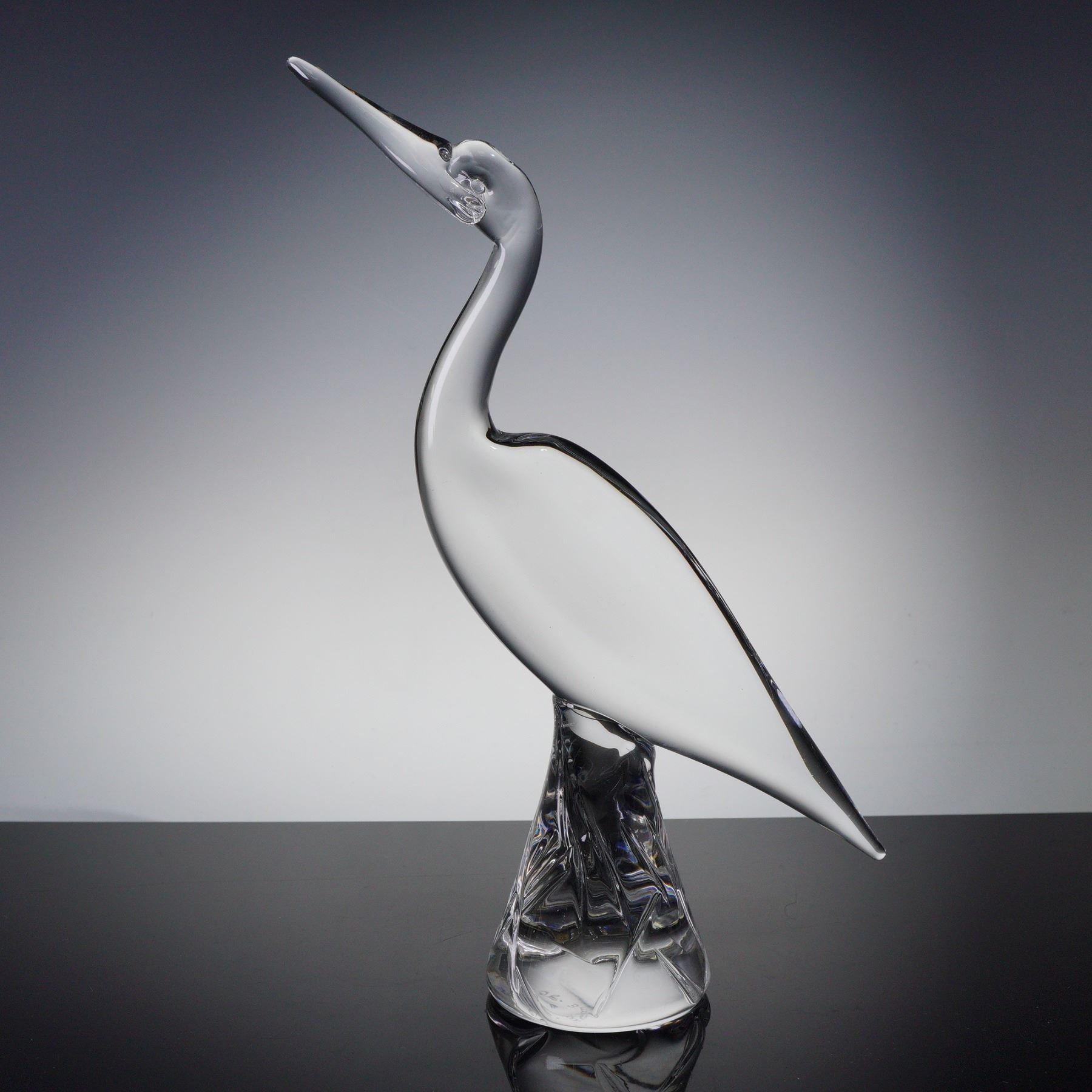 Marcolin Ronneby Glass Sculpture, Heron, Signed