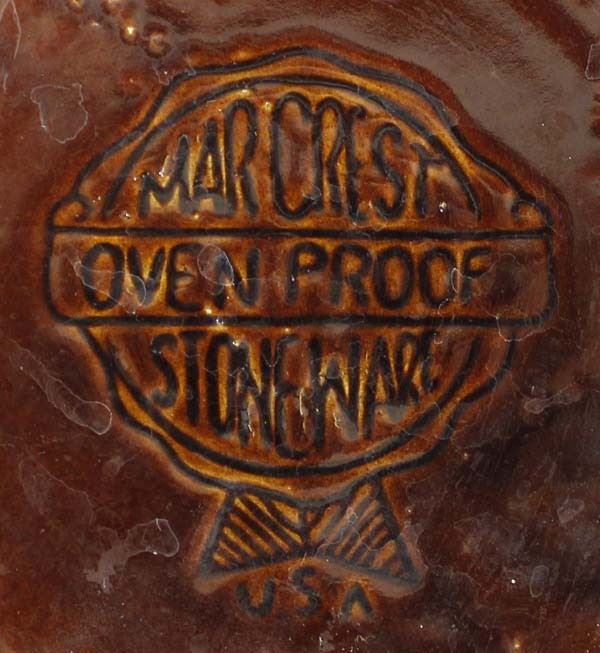 Marcrest Daisy Dot Stoneware Oven Proof Covered Crock, measures 7'' x 10'' and is marked on the bottom