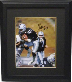 Marcus Allen ran for 12,243 yards and caught 587 passes for 5,412 yards during his career for both the Los Angeles Raiders and the Kansas City Chiefs from 1982 to 1997. He scored 145 touchdowns, including a then league record 123 rushing touchdowns, and was elected to six Pro Bowls over the course of his career. Allen was the first player ever to gain more than 10,000 rushing yards and 5,000 receiving yards during his career. Allen is considered as one of the greatest goal line and short-yard runners in National Football League history and was inducted into the Pro Football Hall of Fame in 2003. Marcus Allen has hand autographed this Raiders 16x20 Color Photo with HOF03 Inscription. Custom Black Mat and Premium Black Color Frame as shown. Allen hologram and Certificate of Authenticity from Athlon Sports.