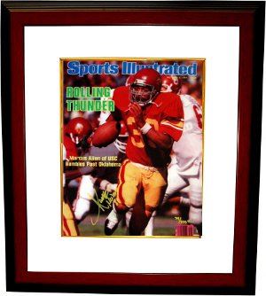 Marcus Allen played running back at the University of Southern California from 1978 to 1981. In 1980, Allen became the starter at tailback and rushed for 1,563 yards, the second-most in the nation that year. In 1981, Allen had one of the most spectacular seasons in NCAA history, rushing for 2,342 yards, becoming the first player in NCAA history to rush for over 2,000 yards in one season. He also gained a total of 2,683 offensive yards, led the nation in scoring, and won the Heisman Trophy, the Maxwell Award, and Walter Camp Award. He was also the Pac-10 Player of the Year. Marcus Allen has hand autographed this USC Trojans Sports Illustrated 16x20 Photo with Heisman 81 Inscription and Limited Edition of 333. White Mat and Wood Color Framed as shown. GTSM hologram and Certificate of Authenticity from Athlon Sports.