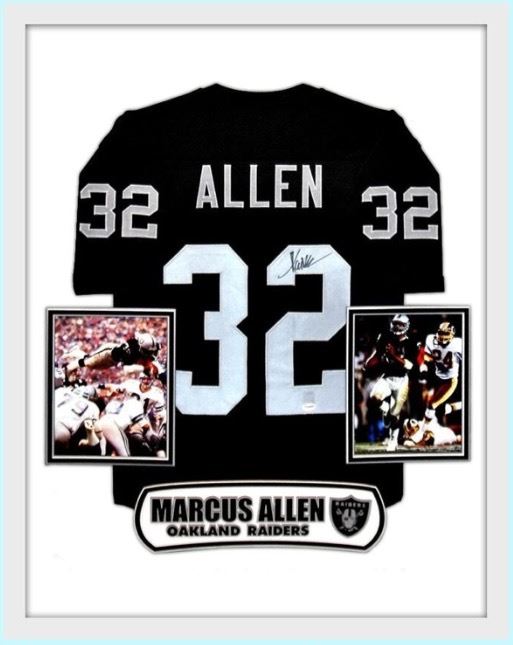 This is a custom framed jersey from one of the all time greats Marcus Allen. This item has JSA authentication. This item comes with a Certificate of Authenticity from a third party authenticator. This Certification of Authenticity does not imply that the item will be certified by any other rival authentication companies. The accompanied certification is the only certification the auction company can confirm. These items are being sold as collectable pieces and there is no guarantee that this item can be resold on any online marketplace. Each of these companies has their own policies and politics.