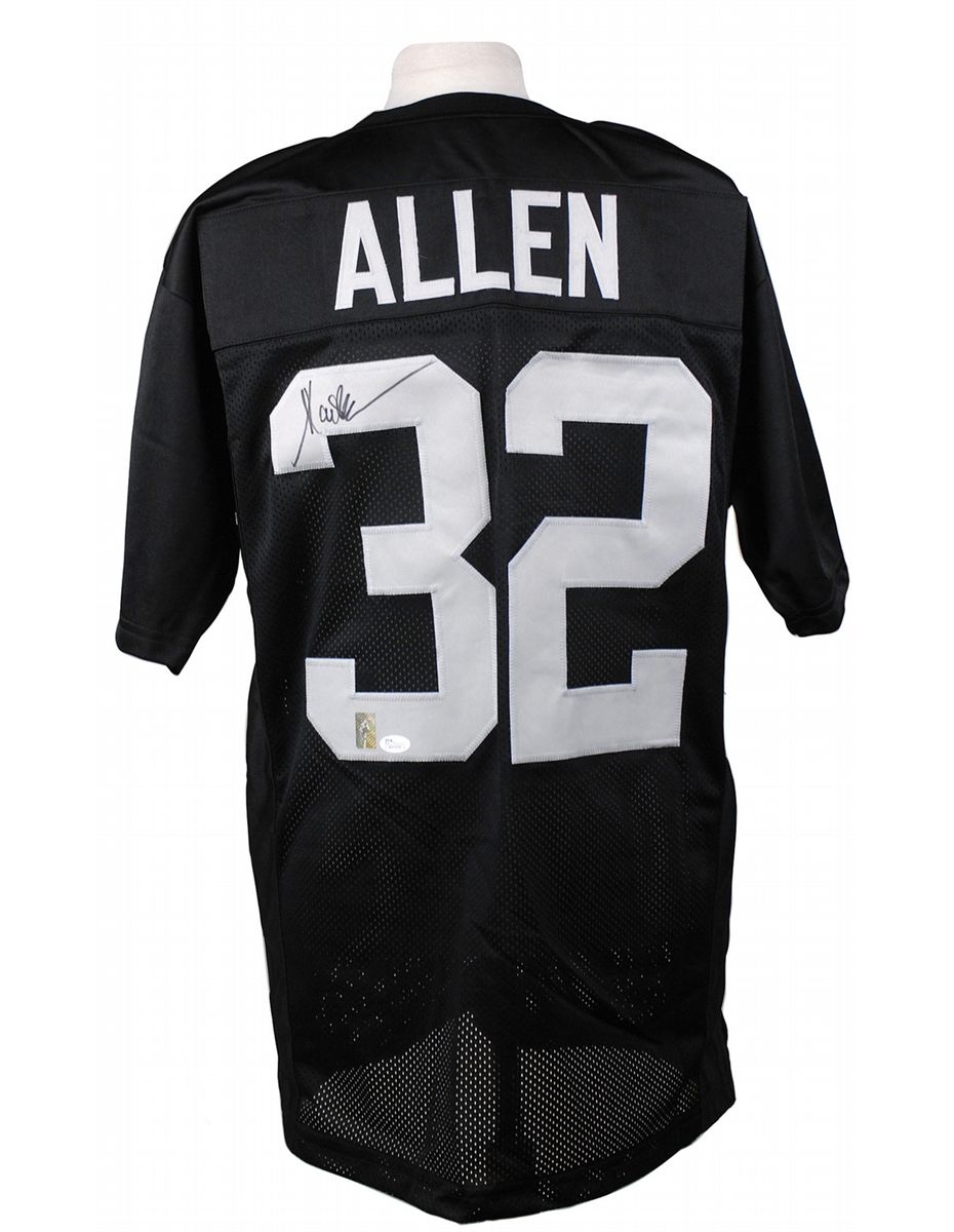 Replica Oakland Raiders football jersey, with sewn on letters and numbers, signed in black felt tip on the number on the back. In fine condition, with a JSA label affixed to the number. Accompanied by a certificate of authenticity from JSA.