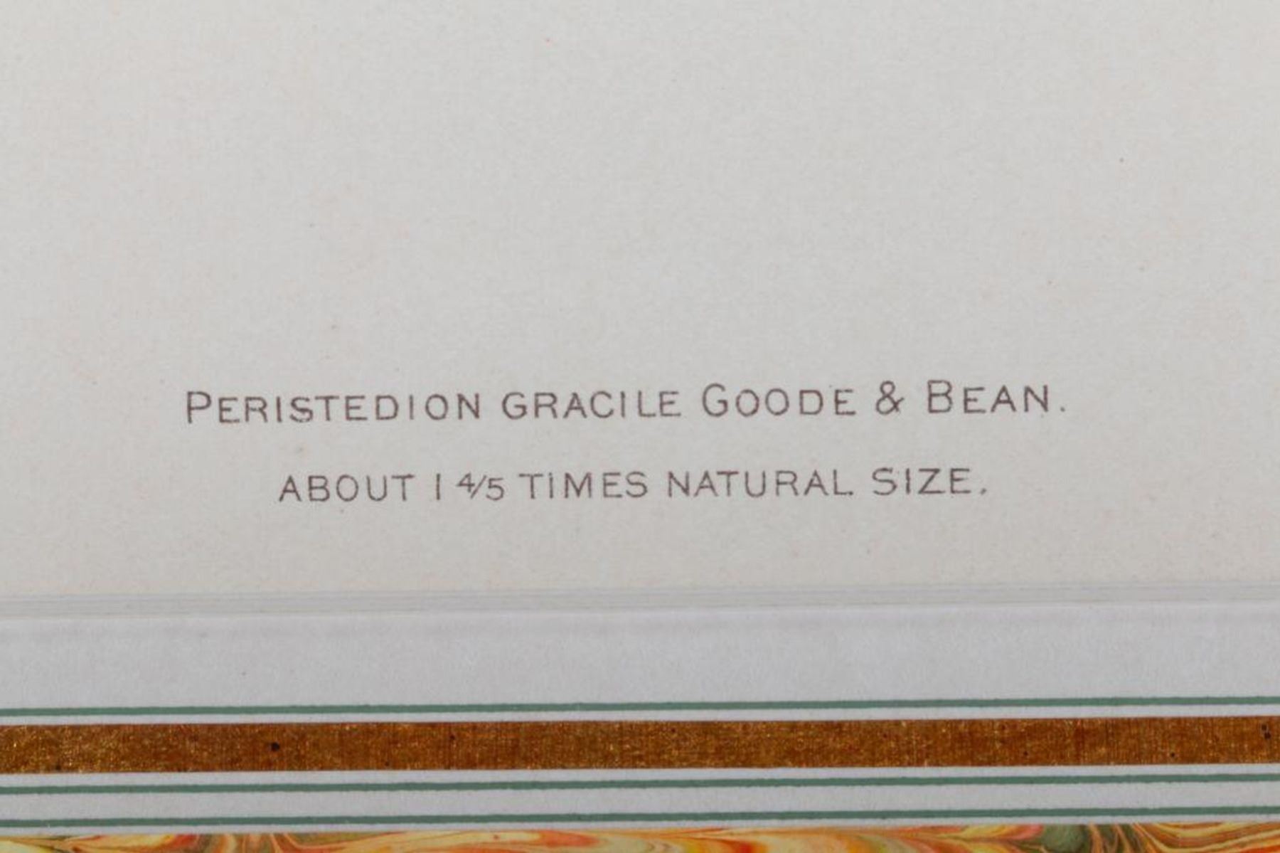 Two finely matted copper plate hand colored engravings of fish printed by M. Bloch circa 1805 from Fish Of The World, and by Bien Circa 1903 from Fish Of The Hawaiian Islands. Size matte: 15 inches high x 18 ½ and 16 inches high x 19 ¾. Size image: 5 ½ high x 8 and 6 ½ inches x 10. Condition: Good. Date: 1805 and 1903.