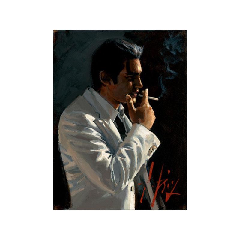"Marcus IV" is a hand embellished limited edition giclee on stretched canvas by Fabian Perez. The piece is numbered and hand signed by the artist and comes with a Certificate of Authenticity. Measures approx. 12" x 16" (image). Please allow 5 additional business for items that include canvas stretch or framing.