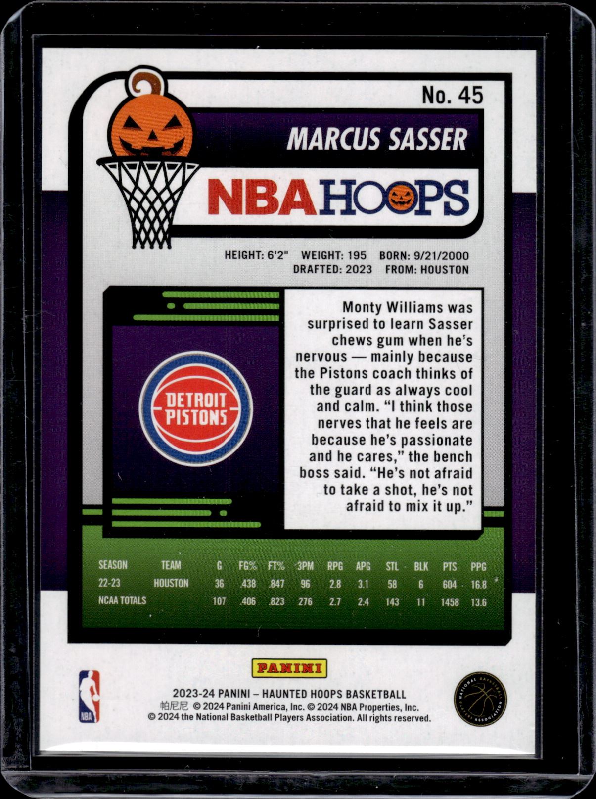 Marcus Sasser Orange Parallel RC 2023-24 Haunted Hoops #45