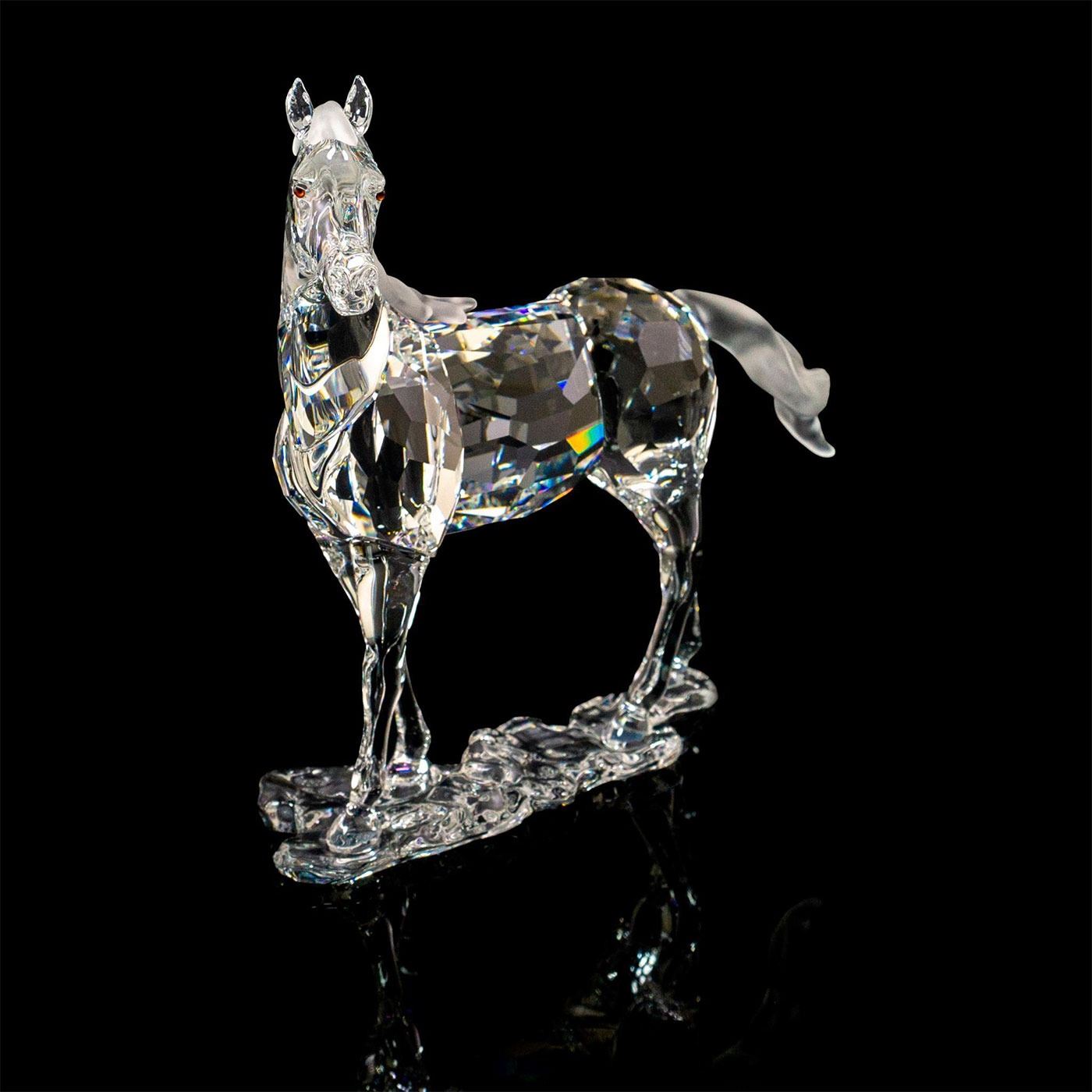 Elegantly crafted from clear faceted crystal, with matte crystal mane and tail; clear unfaceted base. The Peaceful Countryside collection. Swarovski backstamp. With original box.