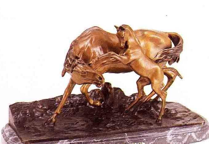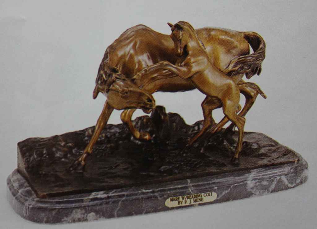 "Mare With Rearing Colt" Bronze Sculpture - After Mene - Beautiful Patina - Mounted On A Fine Italian Marble Base - Beautifully Detailed - Signed - Mint Condition - 8"H X 13"W - Lost Wax Cast Bronze