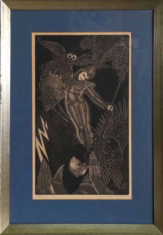 Margaret Ann Gaug, Minerva and Jupiter, Etching