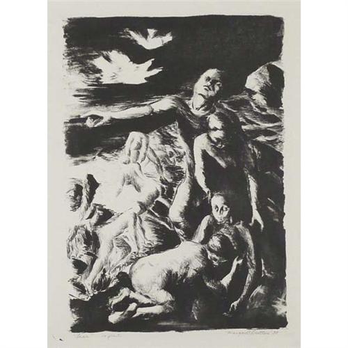 7763 Margaret Britton (1906-1986) Lithograph "Fear" '39 10 prints Signed lower right Image 12 1/2" x 9" Paper 16 3/4" x 12 1/4"