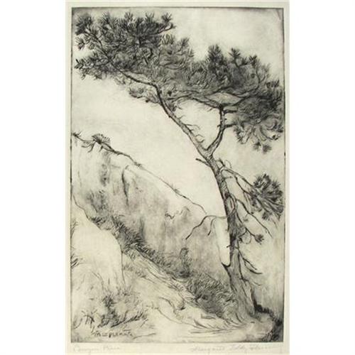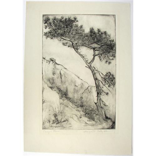 Margaret Fleming (1888-1977) Drypoint Etching, "Canyon Pine", image size 8 7/8" x 5 7/8", pencil signed