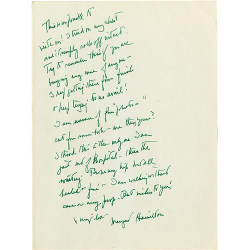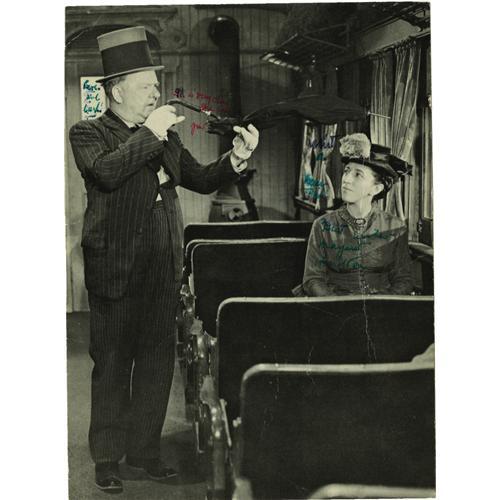 <B>Margaret Hamilton Signed Photo.</B></I> A b&w 6" x 8" photo of Margaret Hamilton (best known as "the Wicked Witch of the West" in <I>The Wizard of Oz</B></I>) opposite W.C. Fields in <I>My Little Chickadee,</B></I> inscribed and signed by her on the front in green ink, with a lengthy note written and signed by her on the back also in green. In Fine to Very Fine condition with some mild wear and a few creases, including a heavy one along the right edge. <I>Accompanied by LOA from PSA/DNA.</B></I><BR><BR><b>Shipping:</b> Other (oversized items, group lo (<a target="_blank" href="http://www.heritageauctions.com/common/shipping.php">view shipping information</a>)