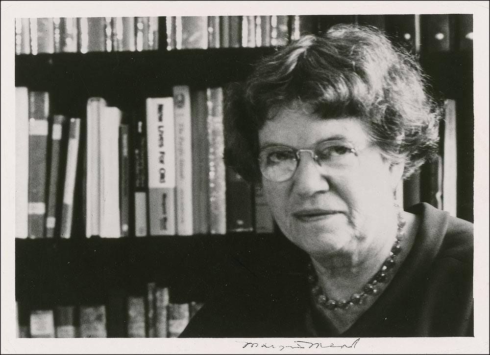 Controversial cultural anthropologist (1907-1978). Uncommon glossy 7 x 5 close-up photo, signed in the lower border in black ballpoint. In very good condition, with scattered creases and surface marks, paperclip impression to top edge, and light skipping to signature.