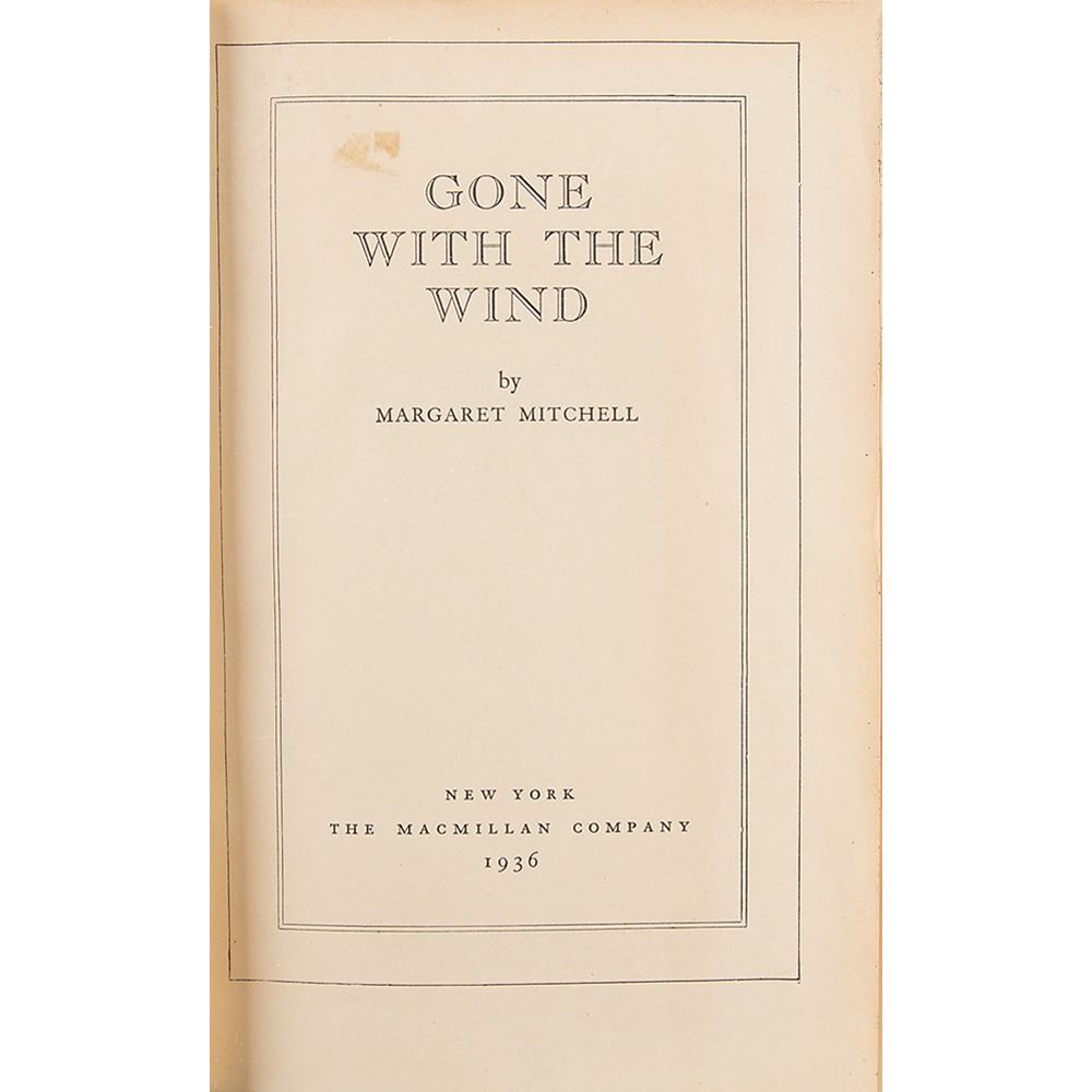 Superb collection of seven TLSs from author Margaret Mitchell, each signed “Margaret Mitchell Marsh,” all of which have been folded and tipped neatly into a hardcover copy of Gone With the Wind (November 1936 printing). The letters are dated between 1937 and 1941, typed on her personal letterhead, and were each addressed to Judge Leonard Harl McMahan of Salem, Oregon. Mitchell touches upon her health and travel plans, sends thanks for compliments and gift baskets, talks of “sacrifice and courage” during wartime, and expounds on her recently published Civil War novel Gone With the Wind, discussing her research, Southern sentiment, and her opinion of U.S. Grant. The letters, in part: