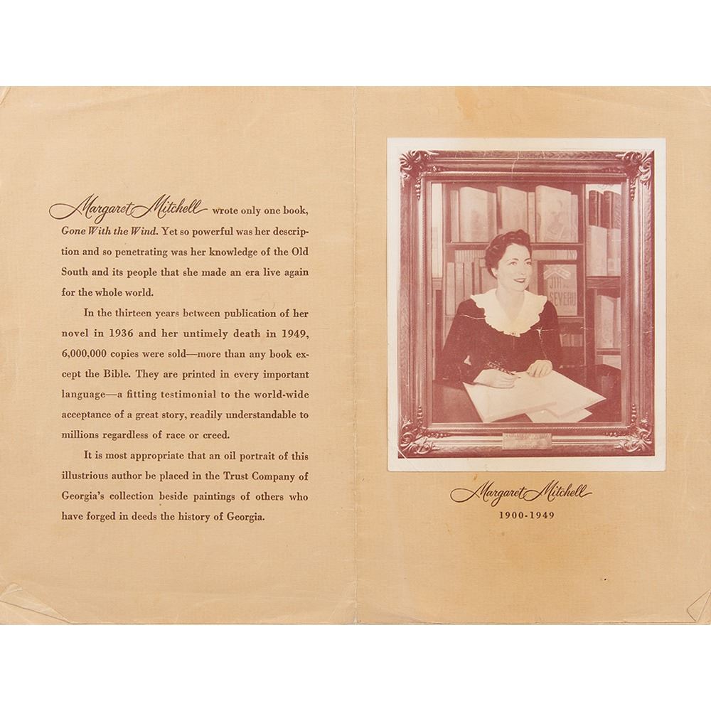 Accompanied by a vintage pearl-finish 6 x 8.25 photo of Mitchell, a program entitled “A Tribute to Margaret Mitchell,” produced by the Trust Company of Georgia, and several newspaper clippings related to her passing, her novel, and her sponsorship of the USS Atlanta.