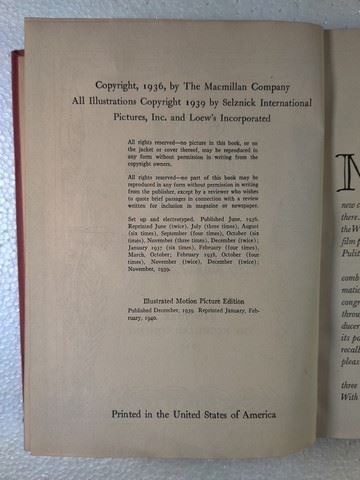 Gone With the Wind (The MacMillan Company, 1936) the complete edition, hard cover book by Margaret Mitchell. 389 pages.