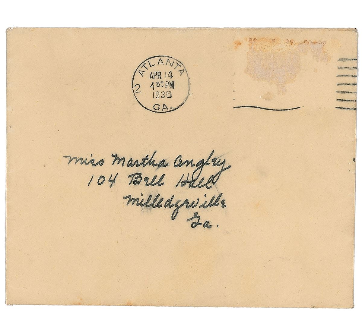 The recipient of this letter, Martha Angley, was a student at Georgia State College for Women who had selected Mitchell as the subject of her term paper on ‘an up-and-coming Southern writer.’ When approached with the idea earlier in the month, Mitchell replied quite graciously, noting that because the book was not yet published she hadn’t ‘felt very much like an author until now.’ As indicated in this letter, the publication date for Gone With the Wind had been changed several times; as anticipated, it was again changed from May to June 30, delaying her instantaneous rise to fame. A charming letter written during the calm before the storm, just two months before her magnum opus hit the shelves.