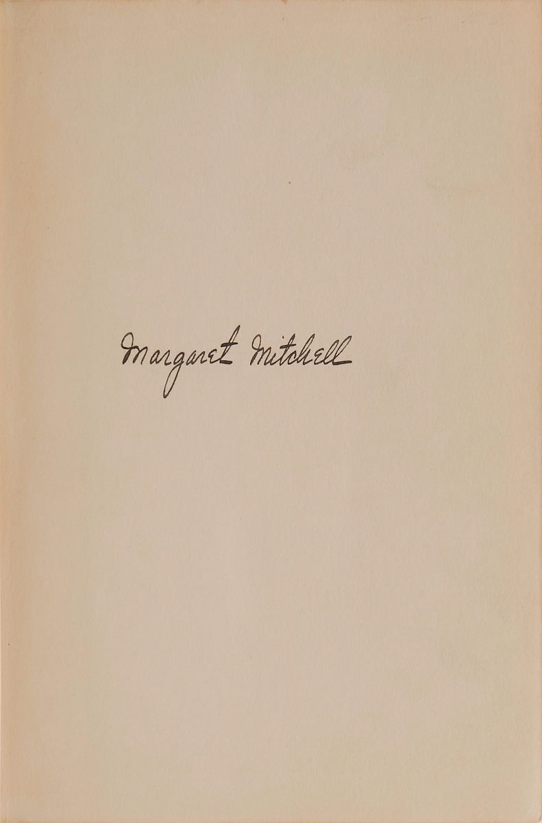 Signed book: Gone With the Wind. First edition, first printing. NY: The Macmillan Company, 1936. Hardcover with second-issue dust jacket, 6 x 8.75, 1037 pages. Beautifully signed on the first free end page in fountain pen. In fine condition. When Mitchell wrote Gone With the Wind, she had no idea of the sensation it would become. It was an instant bestseller, selling over 1,000,000 copies within the first six months of its publication, and she became so overwhelmed by the countless requests that she received to autograph copies of her novel that less than a year after its publication, she vowed not to sign any more, not even for close friends or relatives. A handsome copy of this 20th century classic, particularly elusive in uninscribed examples.