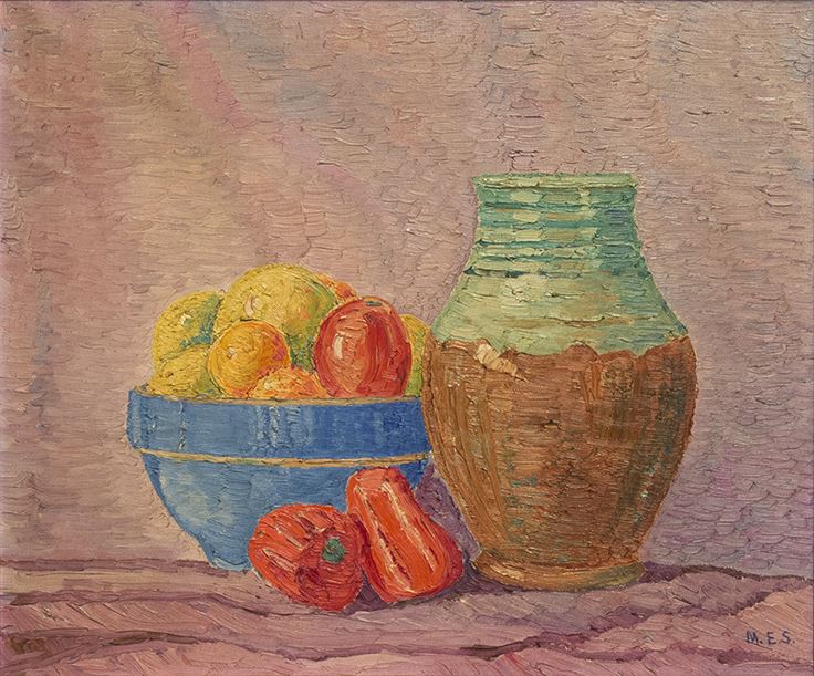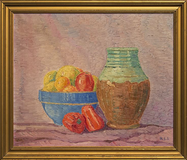 Margaret Sandzén (1909-1994). Still Life. 20" x 24" oil on canvas. Initialed lower right.