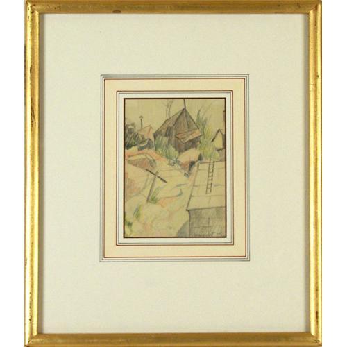 Margaret Tee (1880-1955) Colored Pencil, "Mountain Town", sight size 6" x 4 1/4", signed lower right