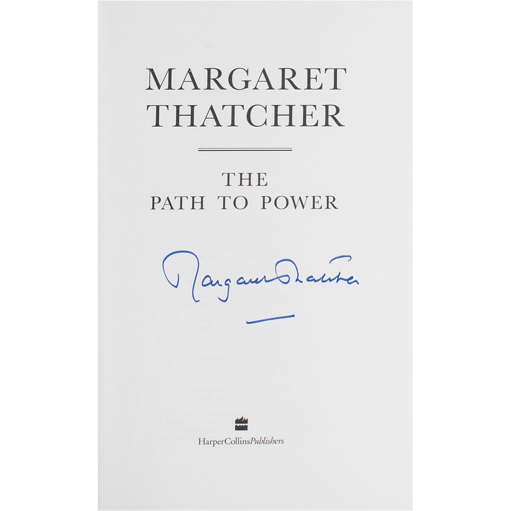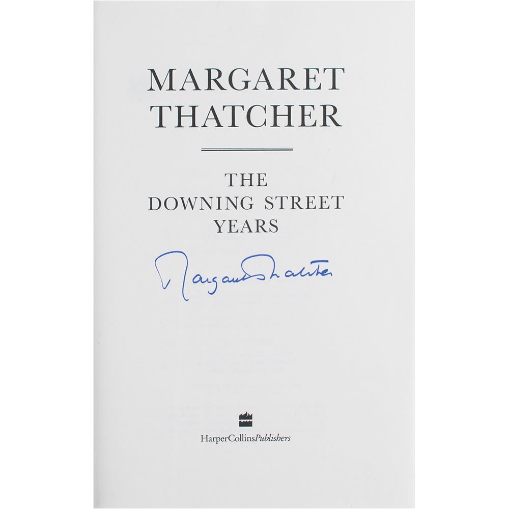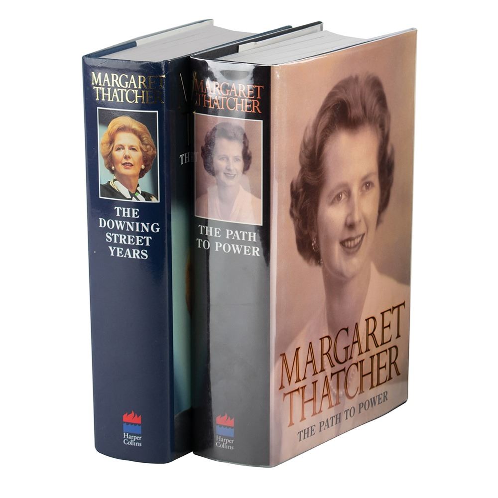 Two books, both hardcovers with dust jackets: a first British edition of The Downing Street Years, signed on the title page in blue felt tip by Margaret Thatcher; and a later printing of The Path to Power, signed on the title page in blue felt tip by Margaret Thatcher. In overall fine condition, with light creasing along the top edge of the Downing Street dust jacket.