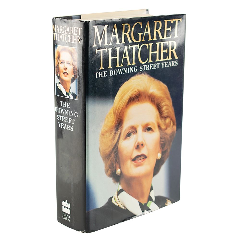Signed book: The Downing Street Years. Later printing. NY: HarperCollins, 1993. Hardcover with dust jacket, 6.5 x 9.5, 914 pages. Signed in blue ink on a "No. 10 Downing Street" bookplate affixed to the first free end page. In fine condition.