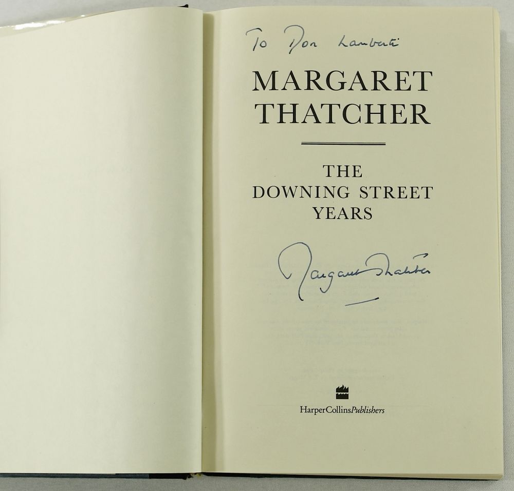 Hand-signed on the inside title page by Margaret Thatcher (D 2013).