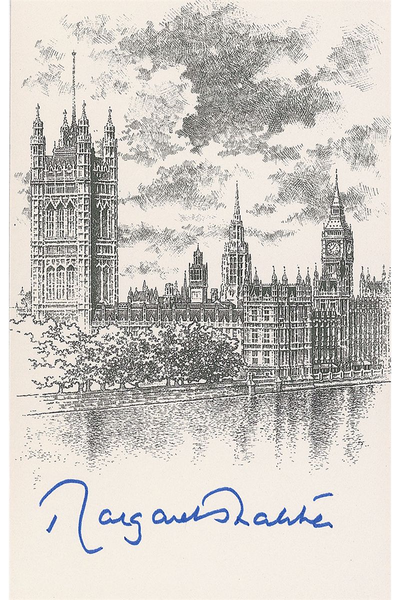 Bookplate featuring an illustration of the Palace of Westminster, 3.5 x 5.5, signed at the bottom in blue felt tip. In very fine condition.