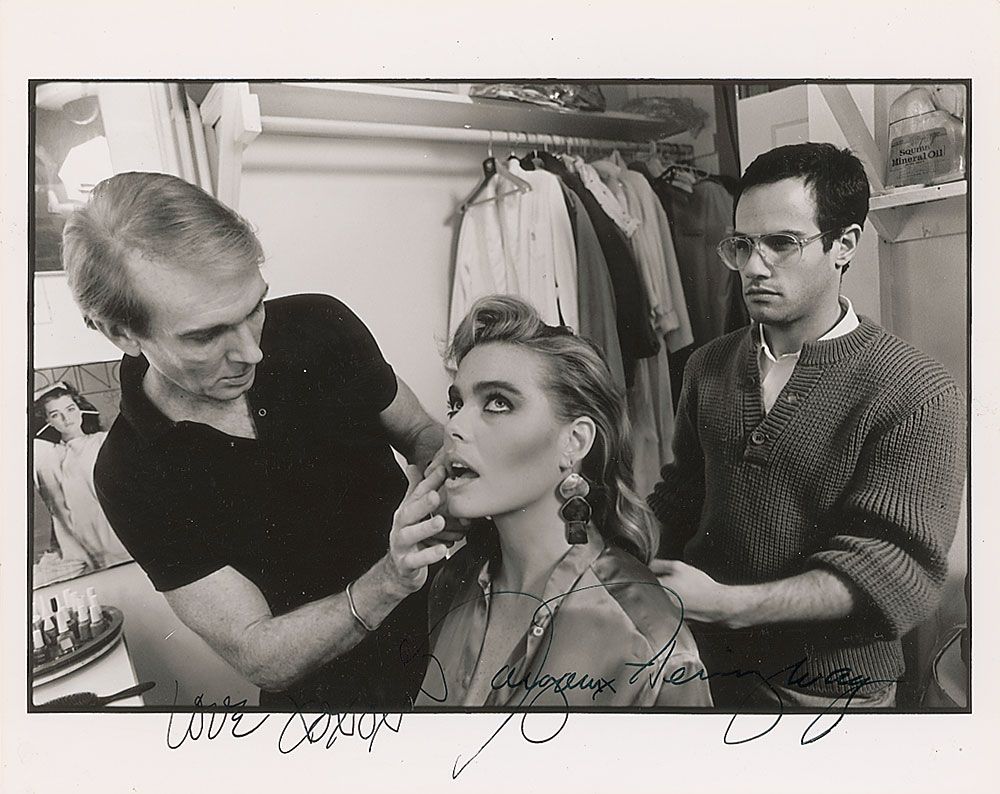 American actress (1954–1996), granddaughter of Ernest Hemingway, who died of a drug overdose at the age of 42. Glossy 10 x 8 photo of Hemingway having her hair and make-up tended to, signed in black felt tip, “Love xxx, Margaux Hemingway.” In fine condition, with some light contrast to last name of signature.